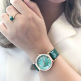 ساعت زنانه بندچرم سبز قاب رزگلد