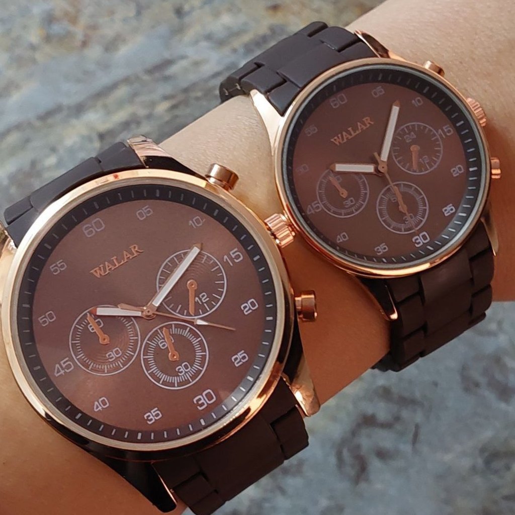 ساعت والارقهوه ای تیره بند پیو. ضدحساسیت. رنگ قهوه ای تیره قاب رزگلد بالاترین کیفیت. وارداتی از دبی شش ماه ضمانت موتور قطر شیشه ساعت مردانه ۳۵ میلیمتر قطر شیشه ساعت زنانه حدودا ۳۰ میلیمتر ارسال با جعبه کادویی و کارت گارانتی