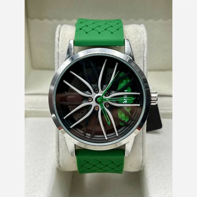 ساعت مردانه اسپرت صفحه رینگی بند پی یو سبز با گارانتی موتور