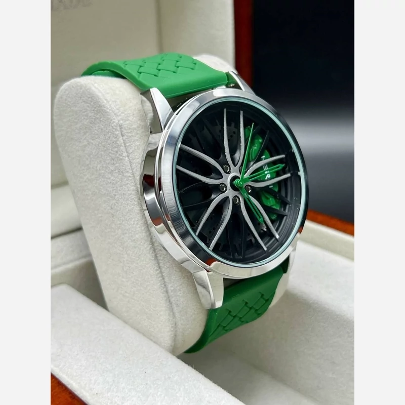 ساعت مردانه اسپرت صفحه رینگی بند پی یو سبز با گارانتی موتور