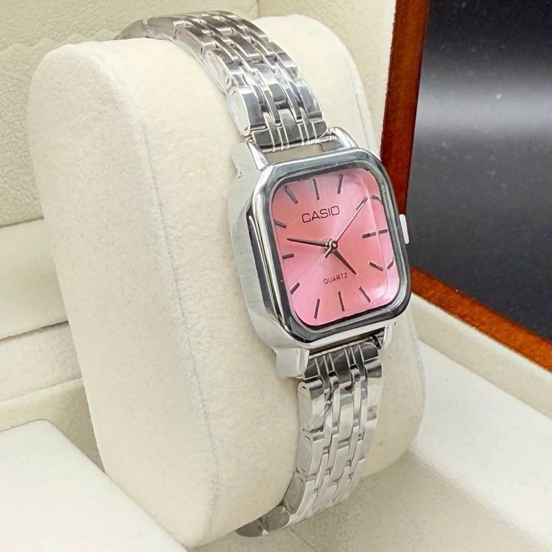 ساعت مچی زنانه کاسیو صفحه مربع صورتی