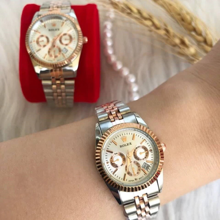 ساعت رولکس بنداستیل دورنگ نقره ای رزگلد
