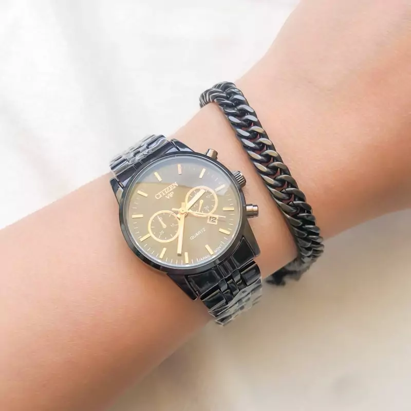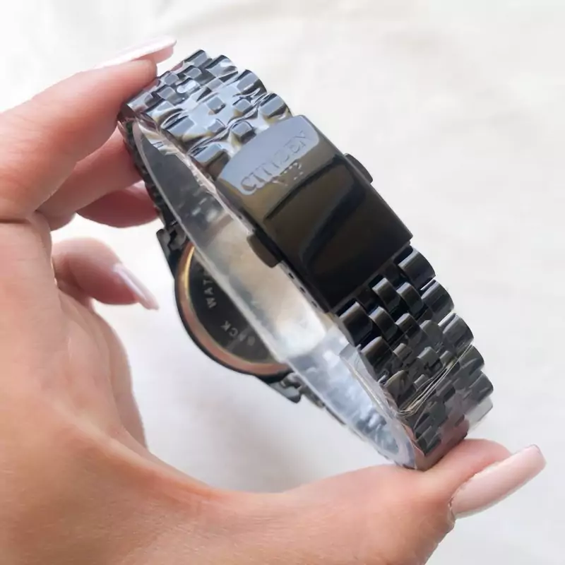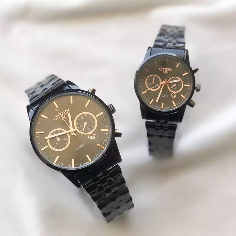 ساعت زنانه و مردانه مارک سیتیزن vip کیفیت عالی طرح 3موتوره تقویم دار فول مشکی تک موتوره ارسال رایگان بهمراه جعبه و کارت ضمانت موتور فروش بصورت ست و تک