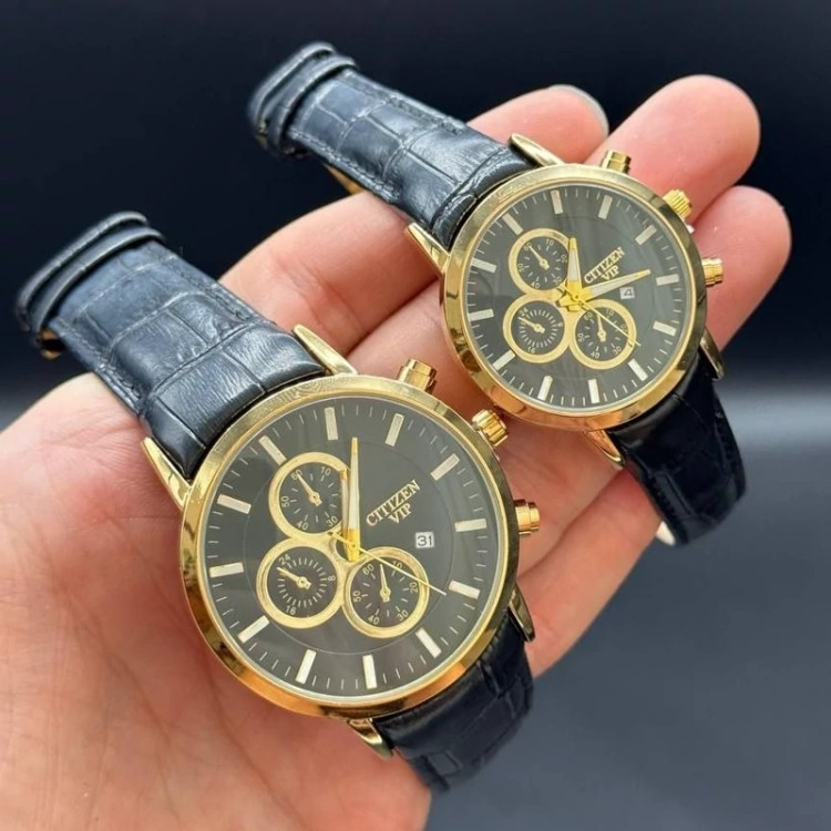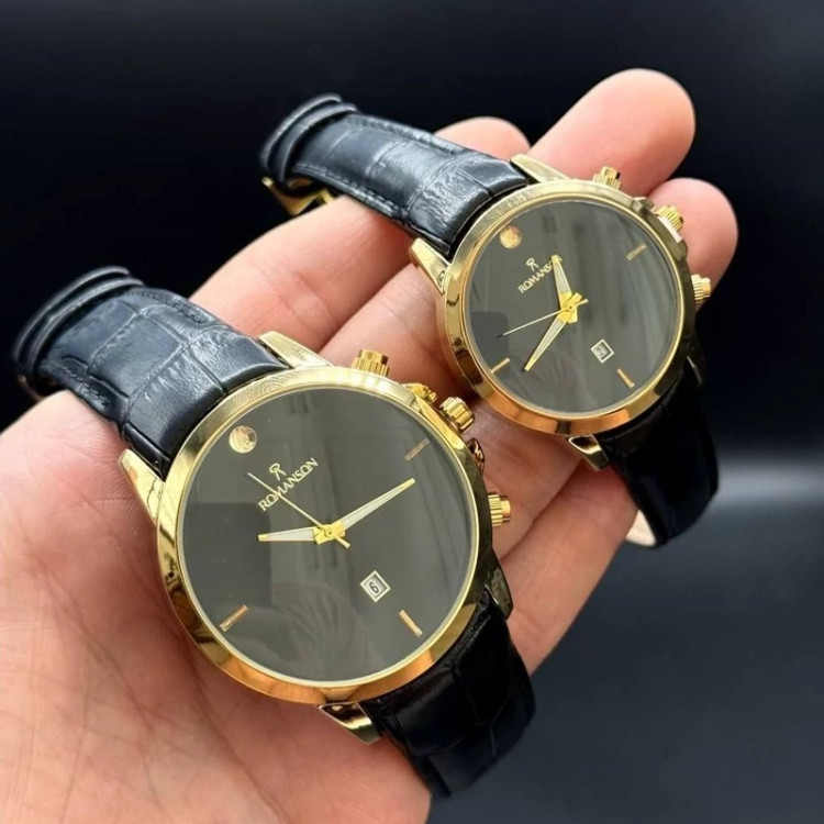 ساعت مچی ست رومانسون بند چرم مشکی صفحه ساده
