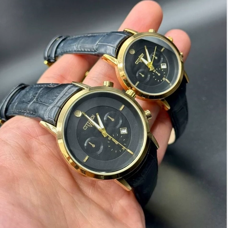ساعت مچی ست رومانسون بند چرم مشکی صفحه ساده