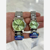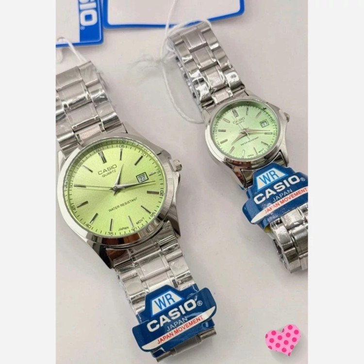 ساعت مچی ست زنانه و مردانه کاسیو نقره ای صفحه سبز روشن
