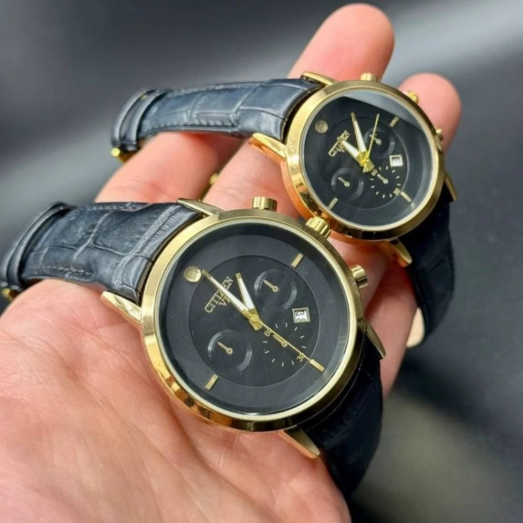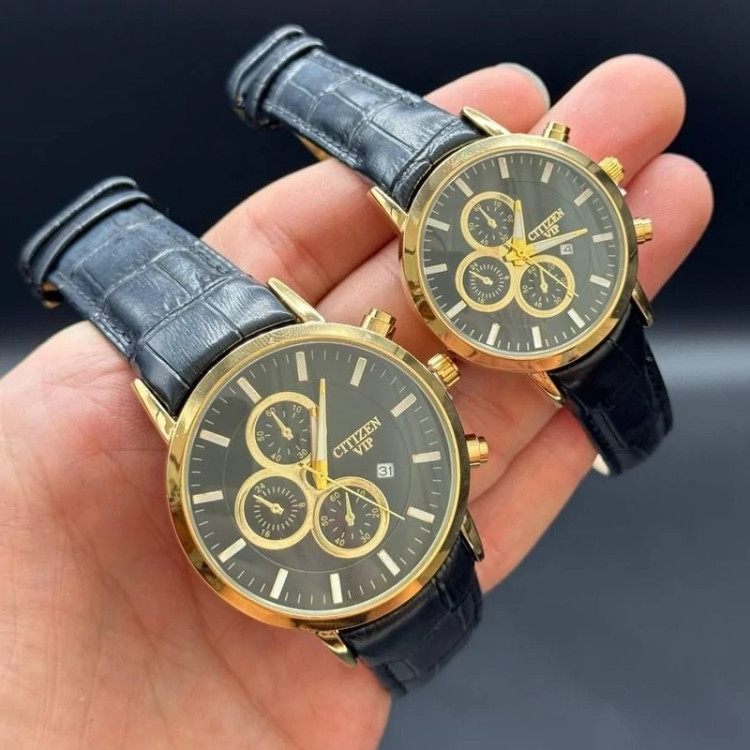 ساعت مچی ست سیتیزن vip قفل پروانه ای بند چرم مشکی