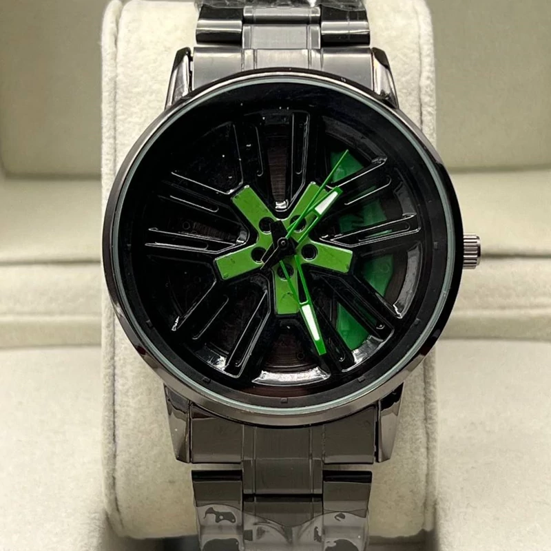 ساعت مردانه صفحه چرخشی مشکی سبز کیفیت عالی