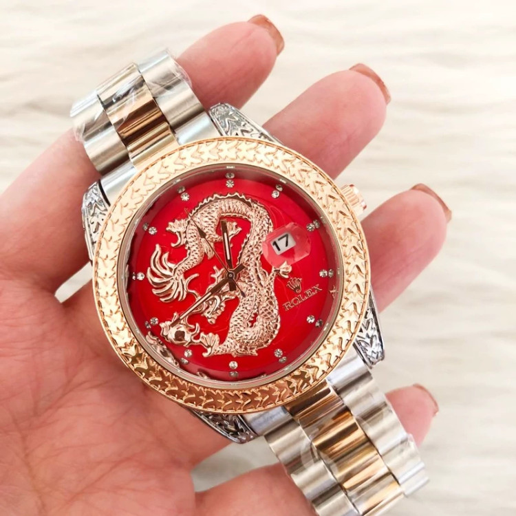 ساعت مردانه رولکس طرح دراگون دارای تقویم کیفیت عالی بنداستیل دورنگ