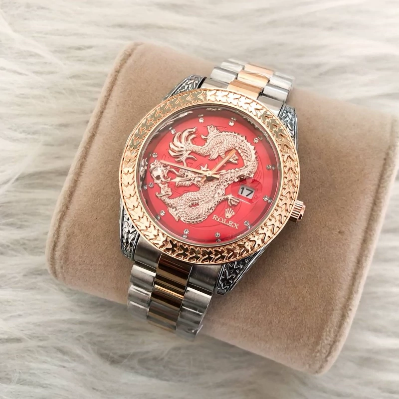 ساعت مردانه رولکس طرح دراگون دارای تقویم کیفیت عالی بنداستیل دورنگ