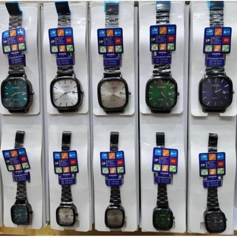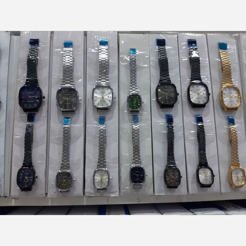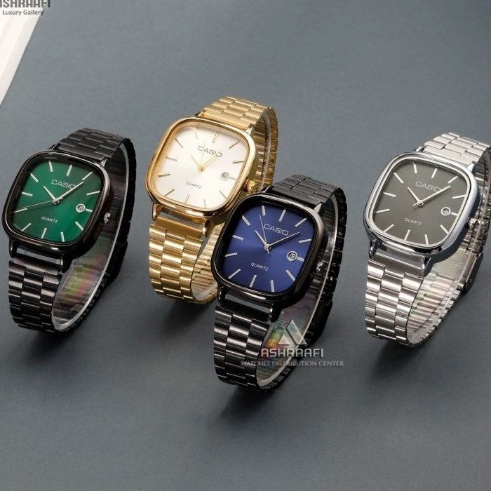 ساعت کاسیو صفحه مربع تقویم دار فروش بصورت ست و تک رنگبندی متنوع 6 ماه گارانتی موتور بهمراه جعبه و کارت ضمانت موتور رنگبندی جور