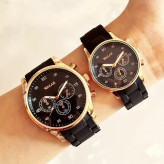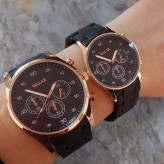 ست ساعت مچی والار مردانه و زنانه بندپیو مشکی قاب رزگلد