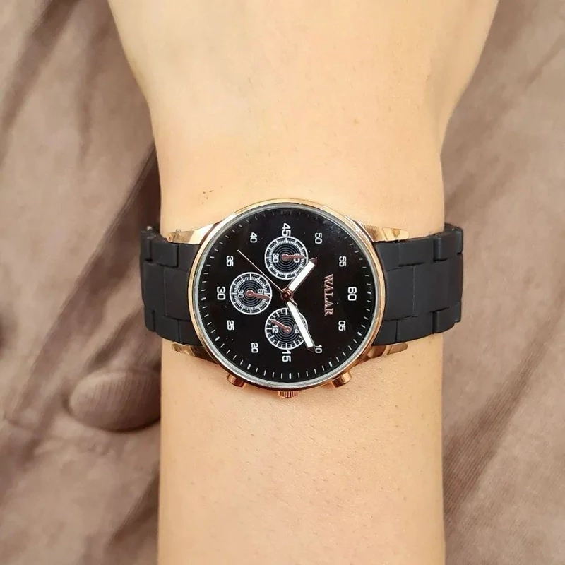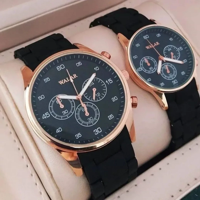 ست ساعت مچی والار مردانه و زنانه بندپیو مشکی قاب رزگلد