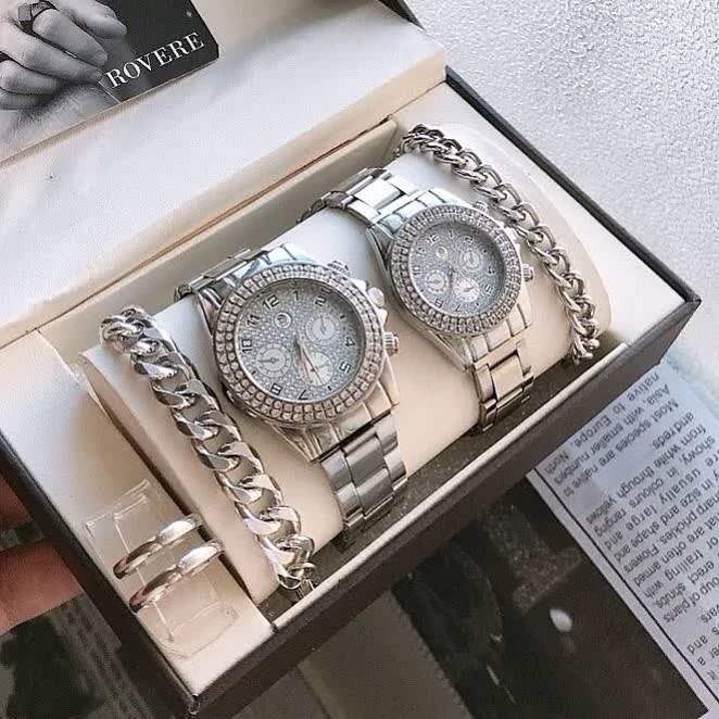 ست ساعت رولکس نگین دار نقره ای کامل بهمراه دستبند و حلقه