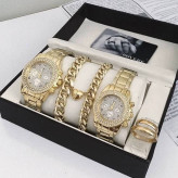ساعت مچیست رولکس نگین دار نقره ای بهمراه ست دستبند و حلقه