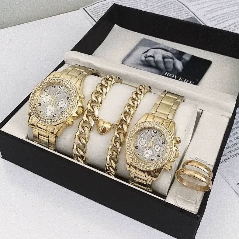 ست ساعت رولکس نگین دار نقره ای کامل بهمراه دستبند و حلقه