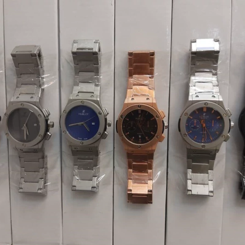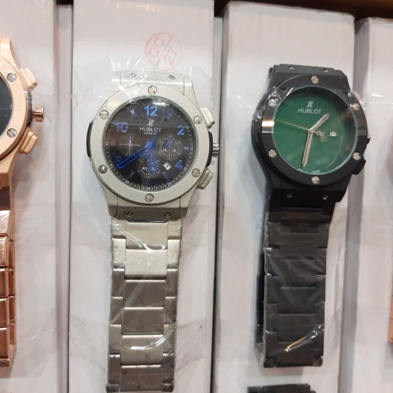 ساعت هابلوت بندو قاب فلزی صفحه سورمه ای دارای تقویم کیفیت عالی شش ماه گارانتی موتور قطر شیشه ساعت مردانه حدودن ۳۸ میلیمتر رنگ بندی موجود قبل از ثبت سفارش موجودی رنگ گرفته شود در غیر اینصورت رنگ موجود ارسال میشود