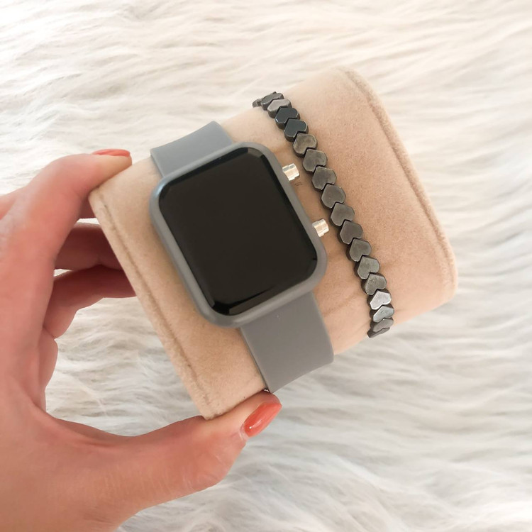 ست ساعت ال ای دی بندژله ای مستطیل طوسی همراه با دستبند حدید کیفیت عالی قیمت همکاری ست ساعت و دستبند با هم فقط 95 هز