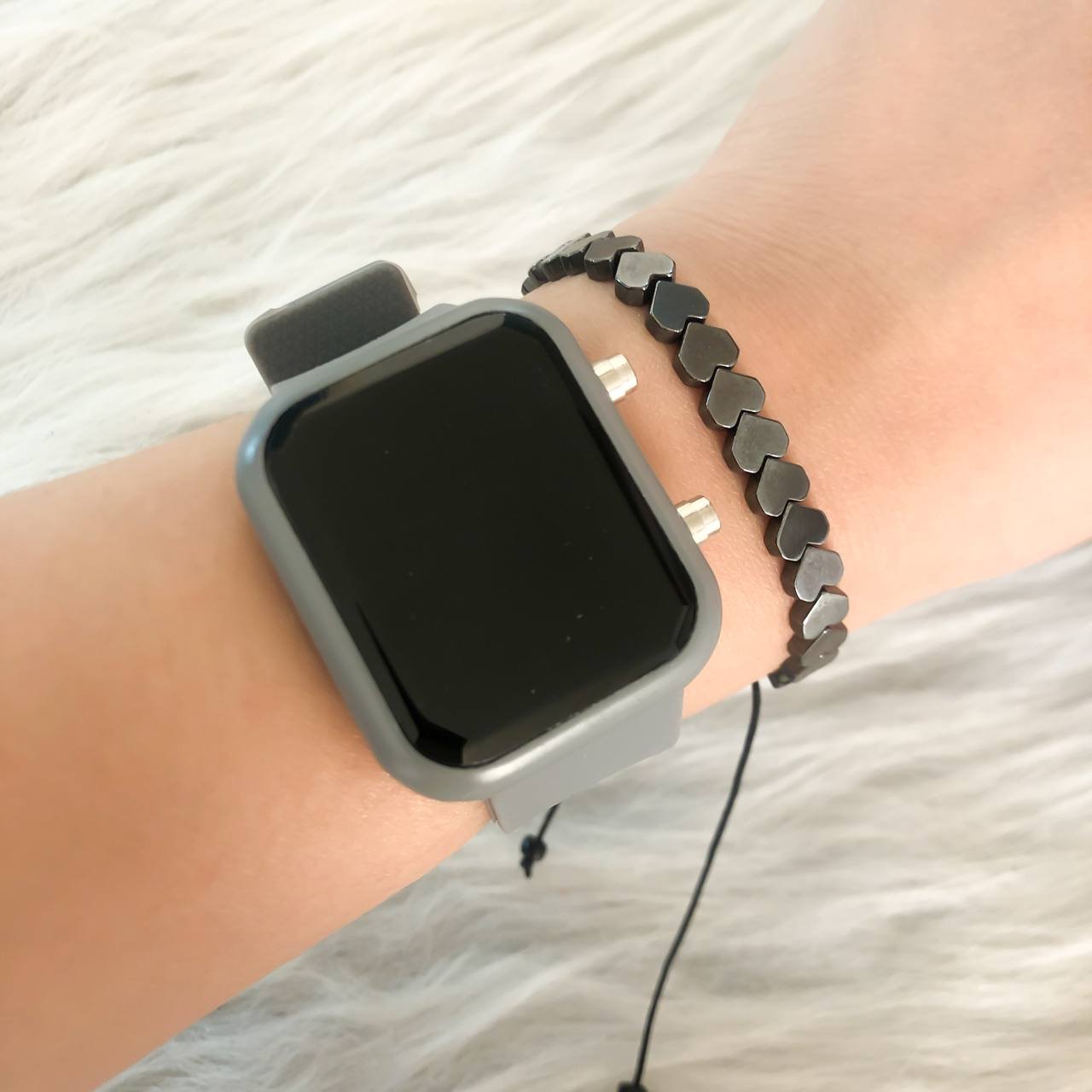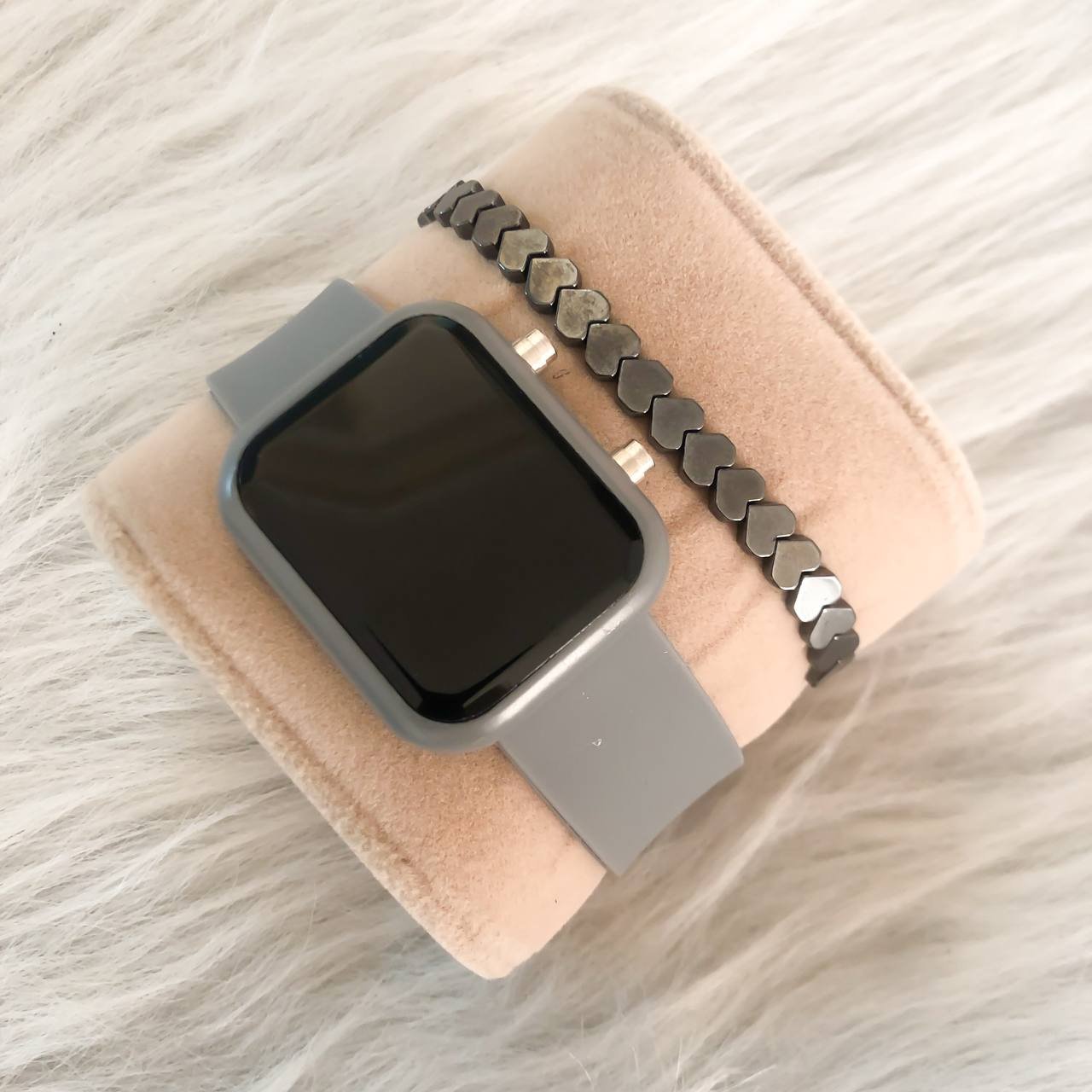 ست ساعت ال ای دی بندژله ای مستطیل طوسی همراه با دستبند حدید کیفیت عالی قیمت همکاری ست ساعت و دستبند با هم فقط 95 هز
