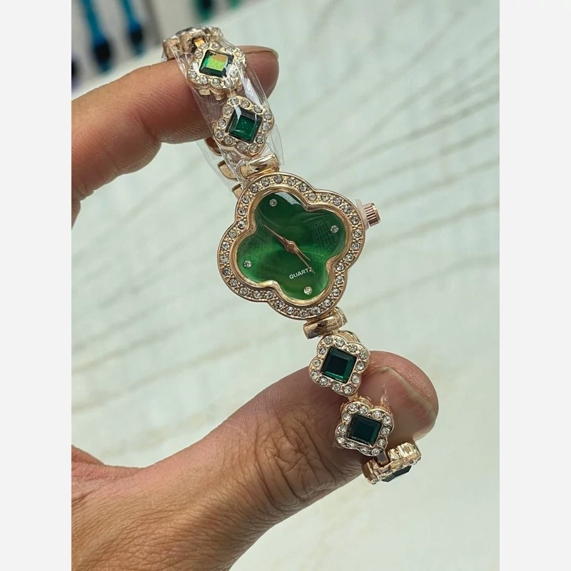 ساعت زنانه نگین رنگی سبز با گارانتی موتور