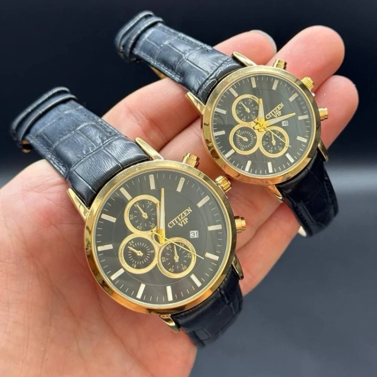 ست ساعت مچی سیتیزن vip بند چرم مشکی