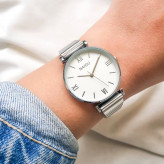 ساعت مچی زنانه بنداستیل نقره ای صفحه سفید