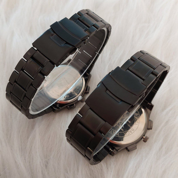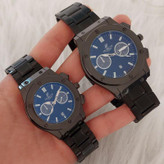 ست ساعت زنانه و مردانه مارک هابلوت بنداستیل مشکی صفحه مشکی قاب مشکی. طرح سه موتوره. شیشه رنگی