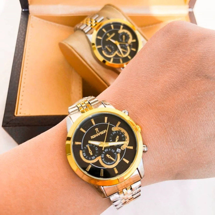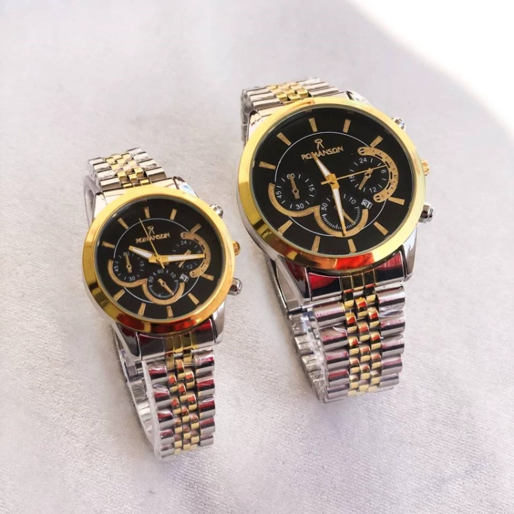 ساعت ست رومانسون نقره ای طلایی صفحه مشکی