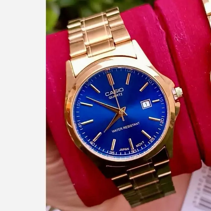 ساعت مردانه کاسیو طلایی صفحه سورمه ای