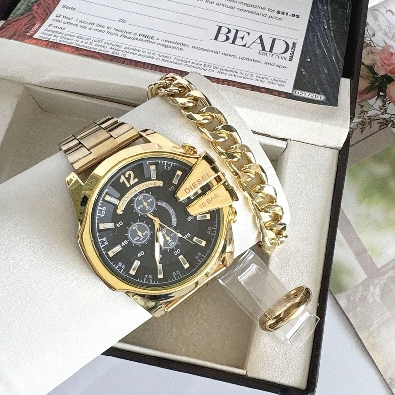 ساعت دیزل شاخدار مردانه بند استیل دارای تقویم روز شمار قفل کلیپسی طرح سه موتوره کیفیت عالی دارای 6ماه گارانتی موتور ارسال با جعبه ی کادویی ✅ ساعت تقویم دار ارسال میشود ⬅️قطر شیشه ساعت مردانه حدودا 40 میلیمتر