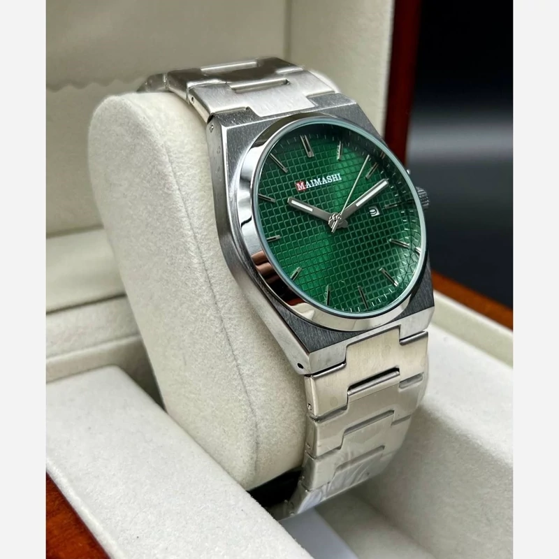 ساعت مردانه نقره ای صفحه سبز با طراحی کلاسیک