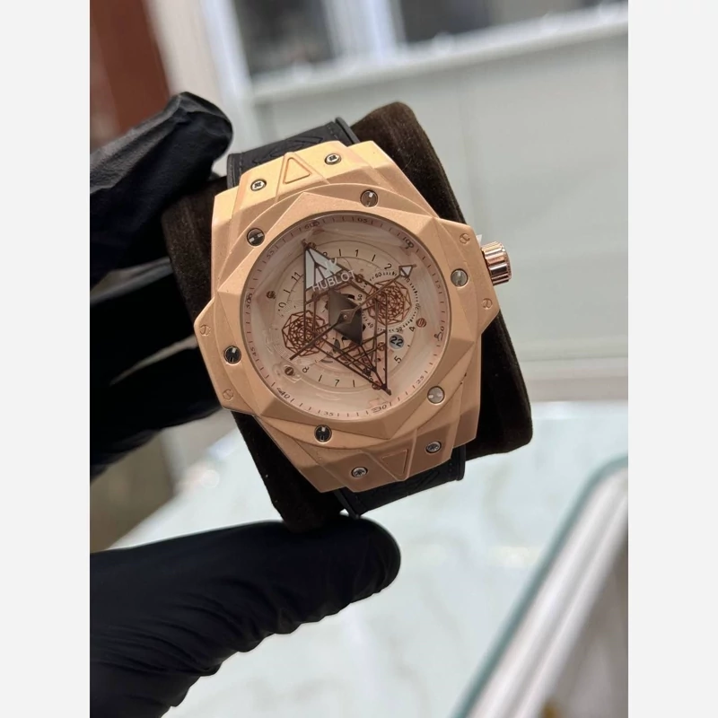 ساعت مردانه هابلوت طرح کهکشانی قاب رزگلد