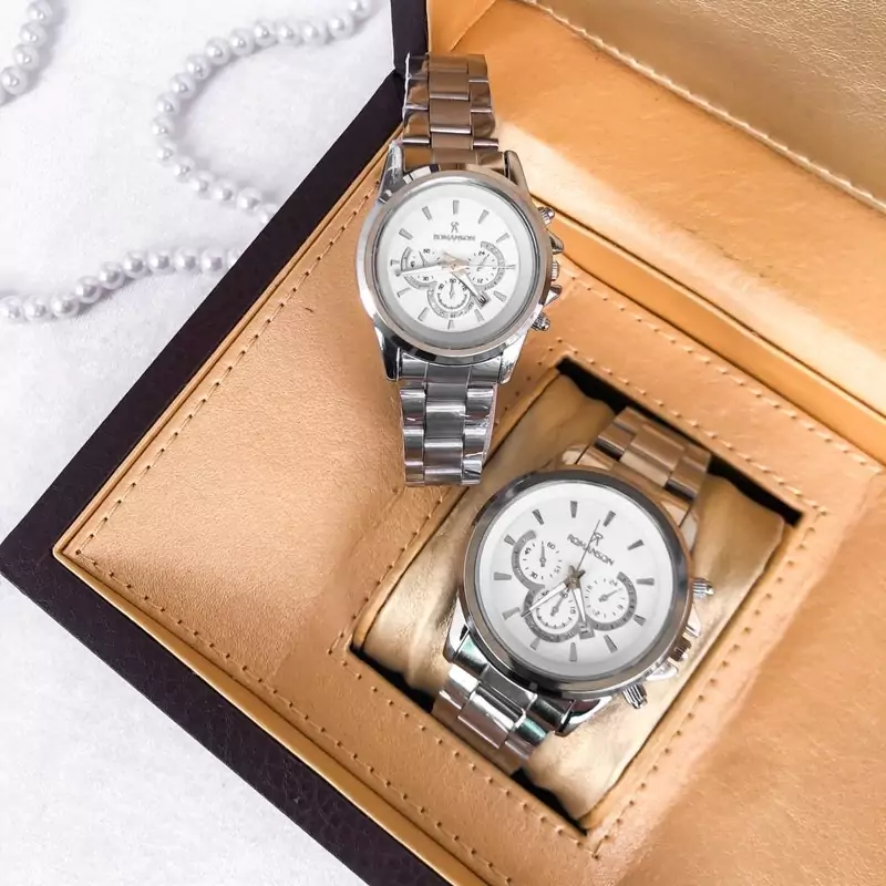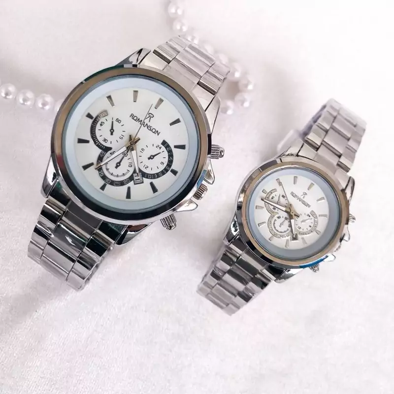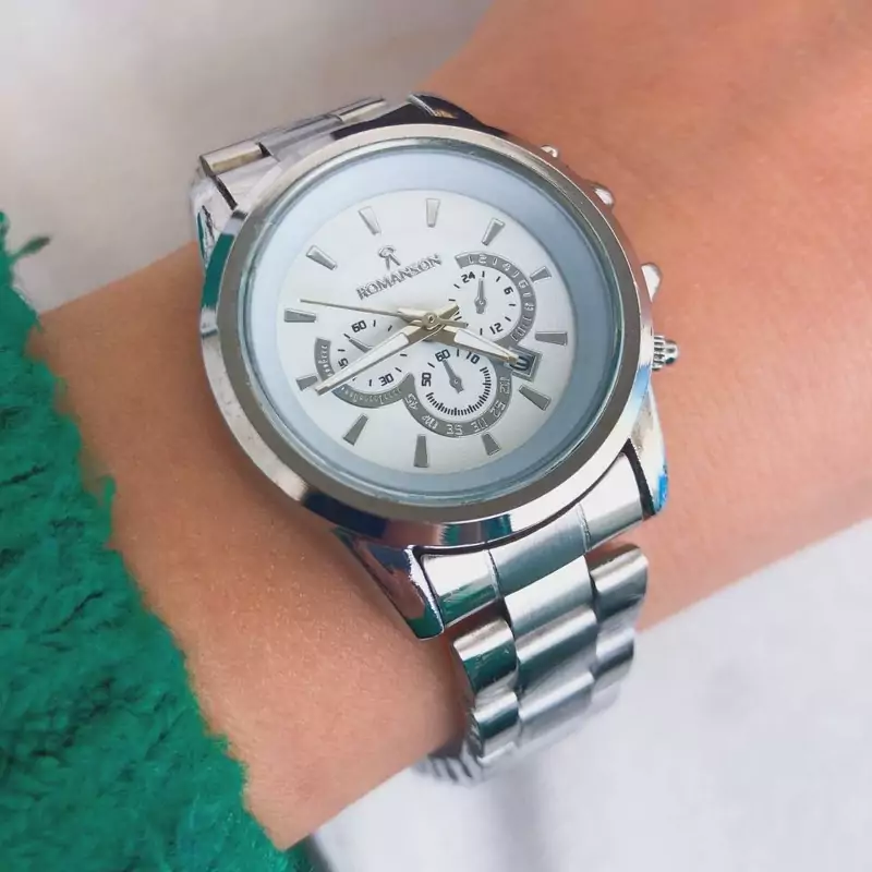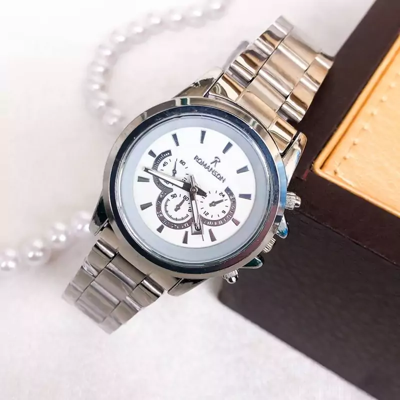 ساعت مردانه مارک رومانسون بند و قاب نقره ای صفحه سفید 6 ماه گارانتی موتور ارسال رایگان بهمراه جعبه و کارت گارانتی