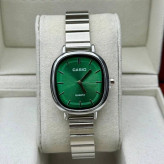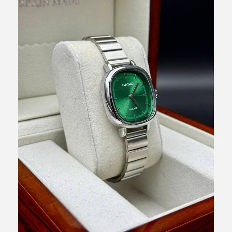 ساعت مچی کاسیو زنانه طرح مینیمال بند کرکره ای صفحه سبز