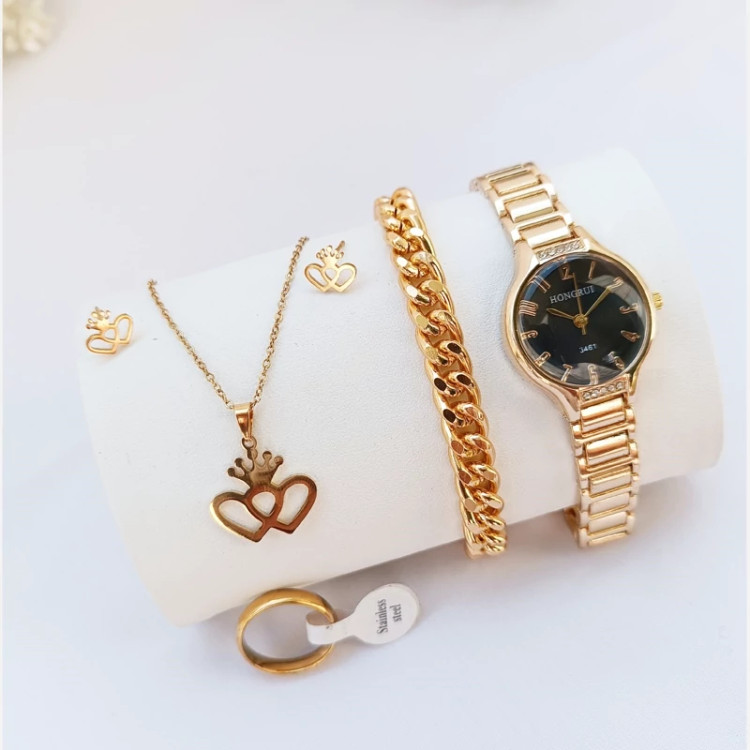 ساعت مچی زنانه دستبند نیم ست انگشتر ارسال
