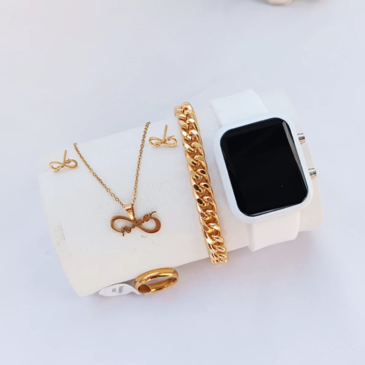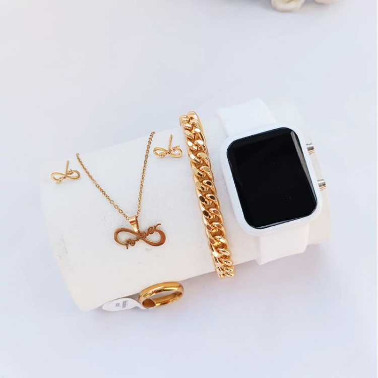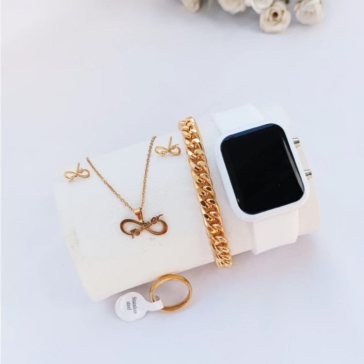 ساعت ال ای دی سفید دخترانه دستبند نیم ست