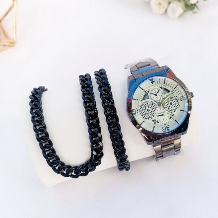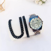 ساعت مردانه دستبند گردنبند مشکی کامل