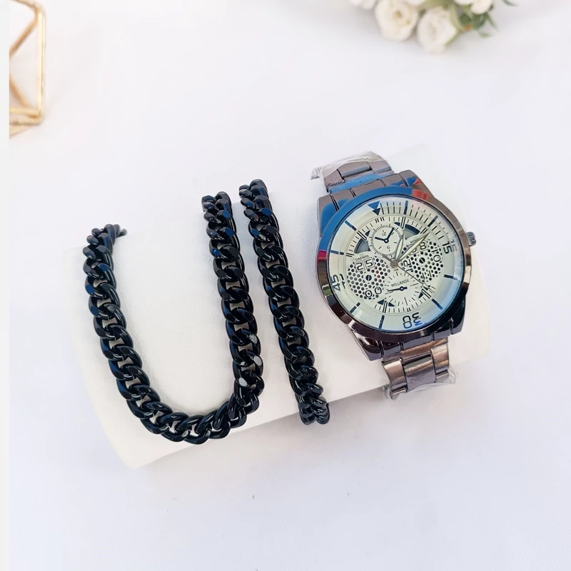 ساعت مردانه دستبند گردنبند مشکی کامل