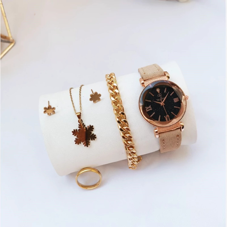 ساعت زنانه صفحه گرد دستبند نیم ست انگشتر