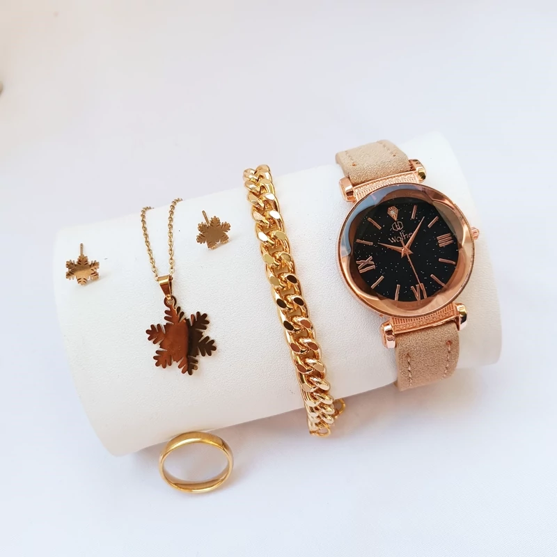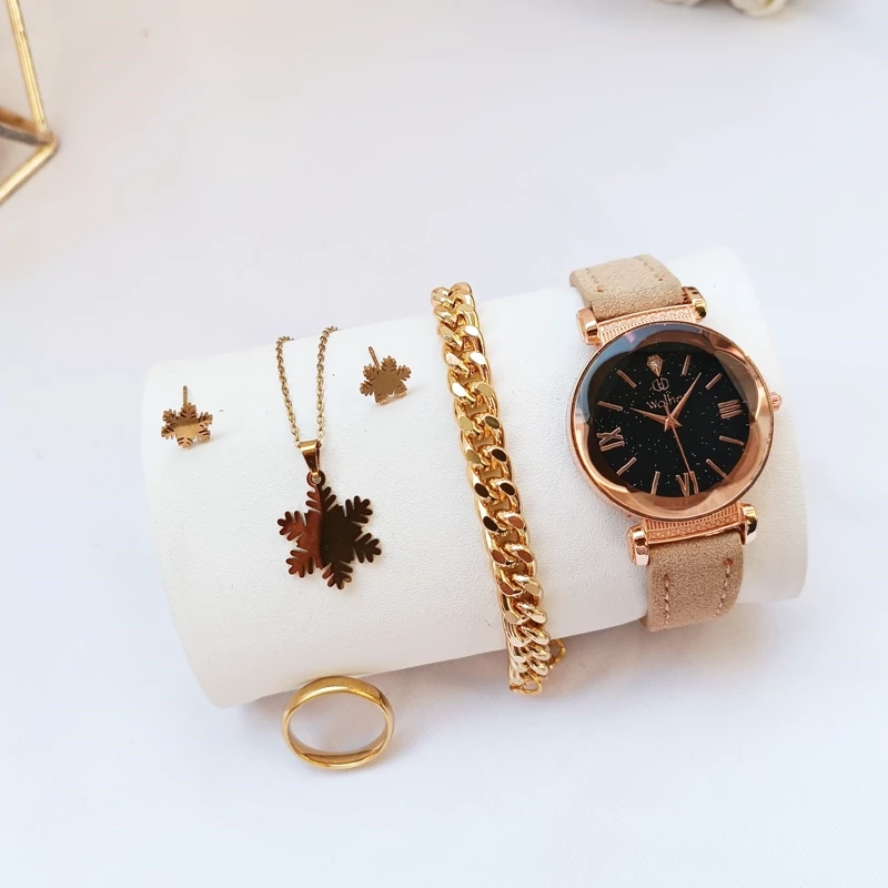 ساعت زنانه صفحه گرد دستبند نیم ست انگشتر