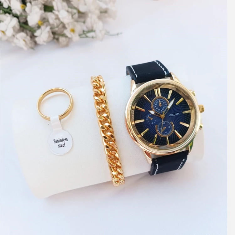 ساعت مچی مردانه دستبند انگشتر رینگی ست کامل