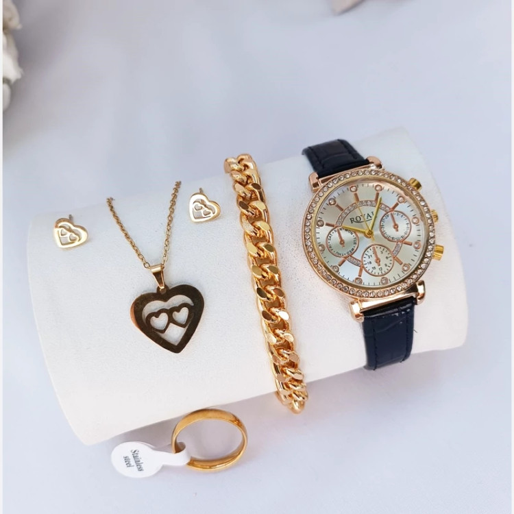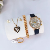 ساعت زنانه دستبندنیم ست جعبه چوبی