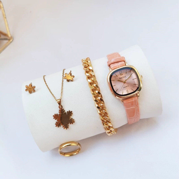 ساعت زنانه دستبندو گوشواره گردنبند زنانه انگشتر زنانه ست کامل