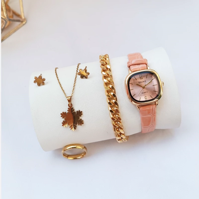ساعت زنانه دستبندو گوشواره گردنبند زنانه انگشتر زنانه ست کامل