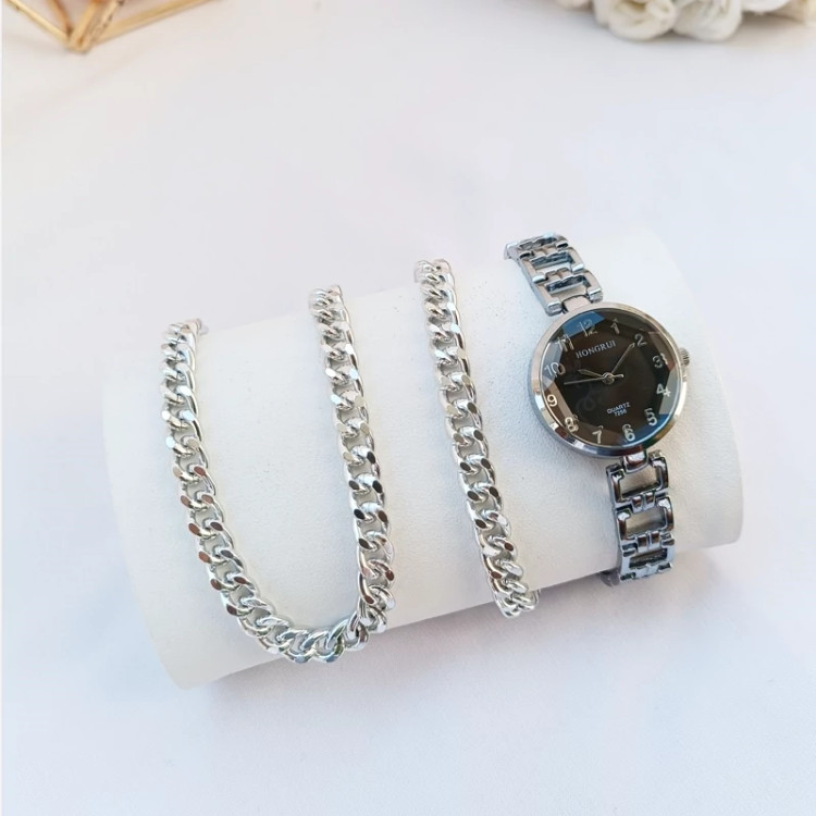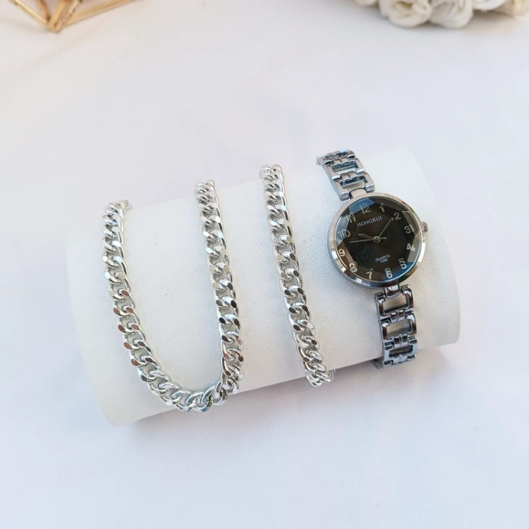 ساعت زنانه مچی دستبند گردنبند نقره ای