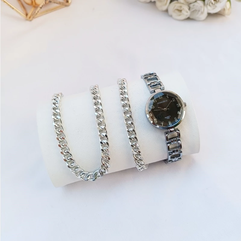 ساعت زنانه مچی دستبند گردنبند نقره ای