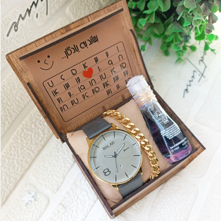 ساعت مچی مردانه دستبند ادکلن ست کامل هدیه کادویی مردانه