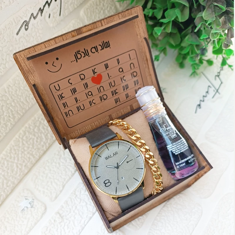 ساعت مچی مردانه دستبند ادکلن ست کامل هدیه کادویی مردانه