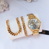 ساعت مچی مردانه دستبند گردنبند ست طلایی