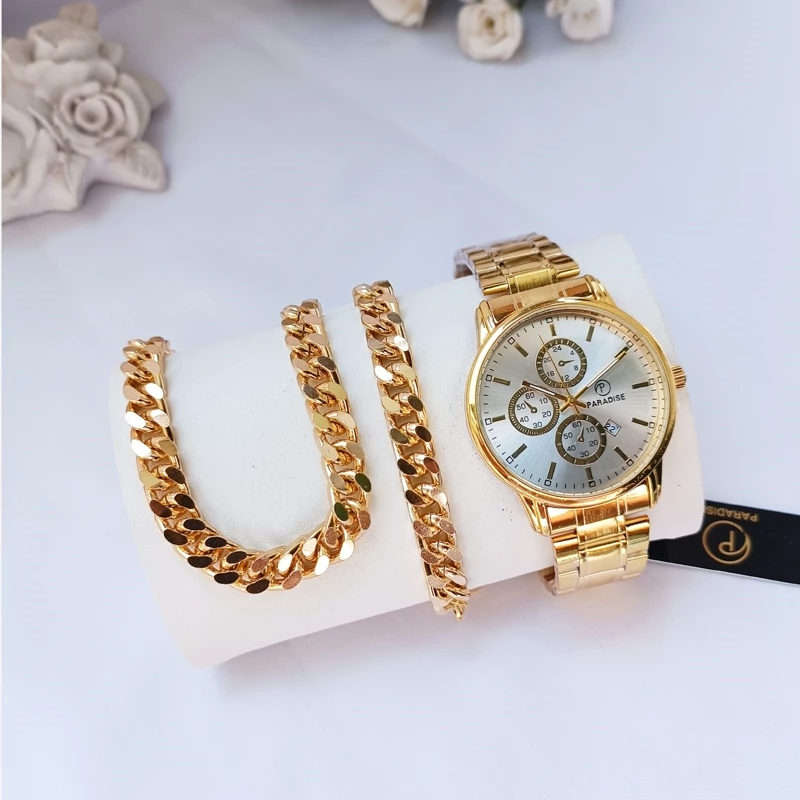 ساعت مچی مردانه دستبند گردنبند ست طلایی